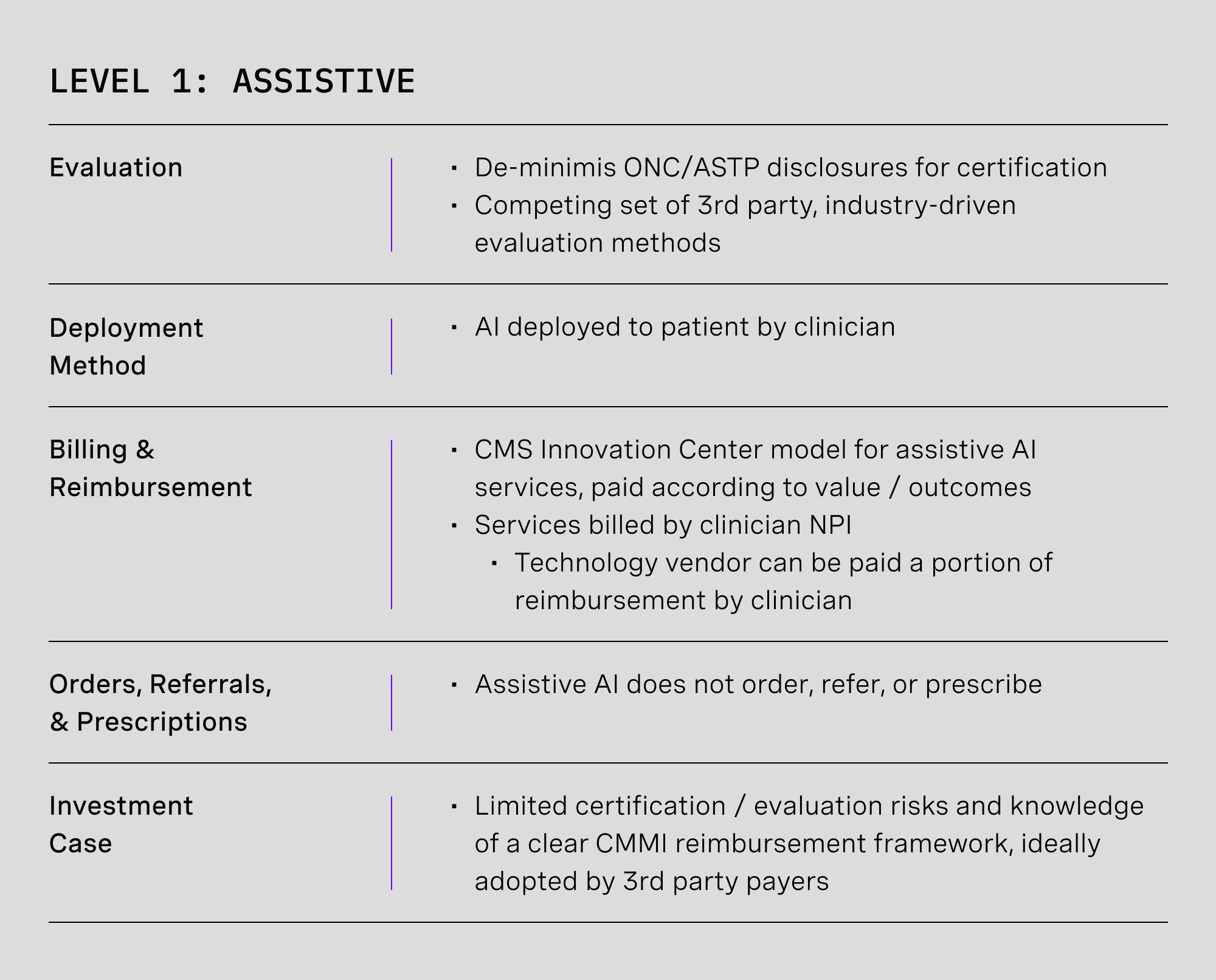 1.A. Implement pay-for-value reimbursement for assistive AI care models [CMMI]