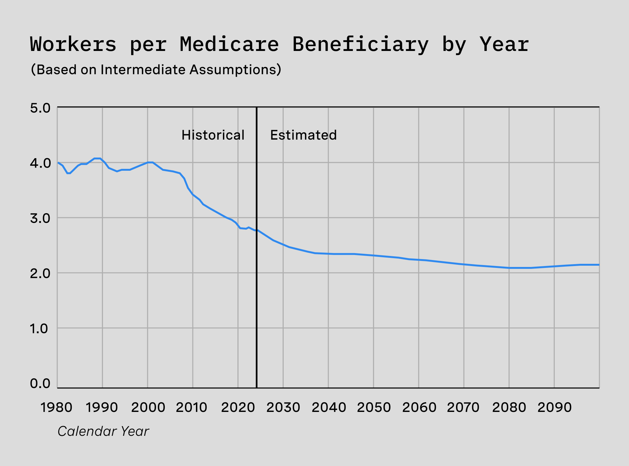 Baby Boomers enjoyed a system where there were four workers for every retiree to support; today that figure is well on its way to two workers per retiree. Those two workers are supporting Medicare not just with their taxes but also with the massive, growing federal debt that they will eventually need to pay down once the Boomers are long gone.