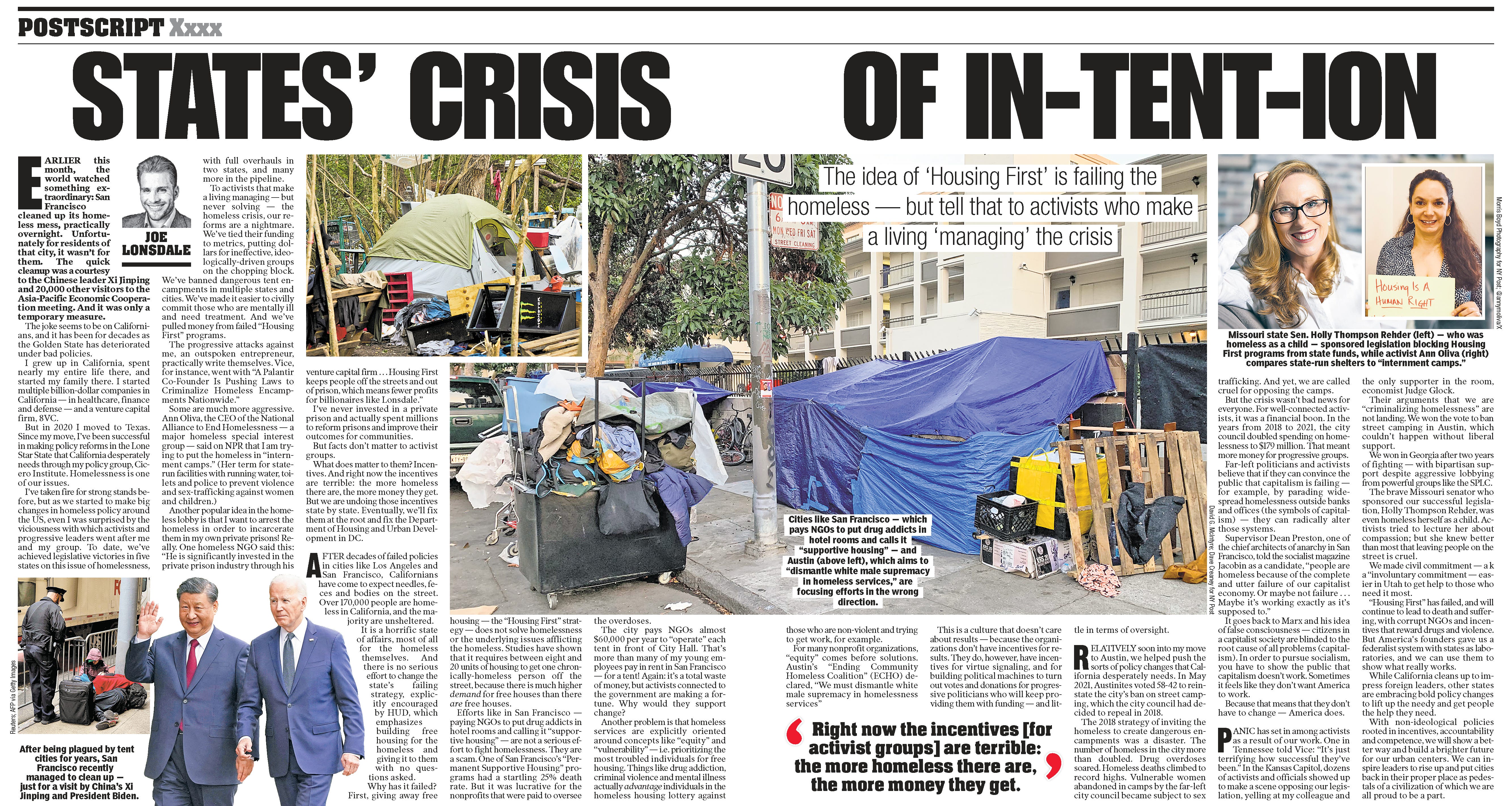 In case you missed it, I was in Sunday’s New York Post with a piece about homelessness policy in the US and our work at the Cicero Institute.
